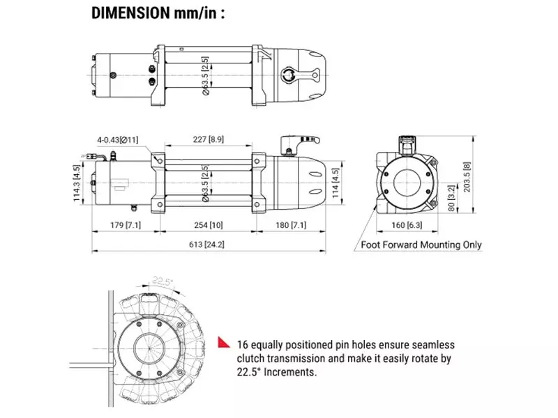 Winch dimensions, mm: