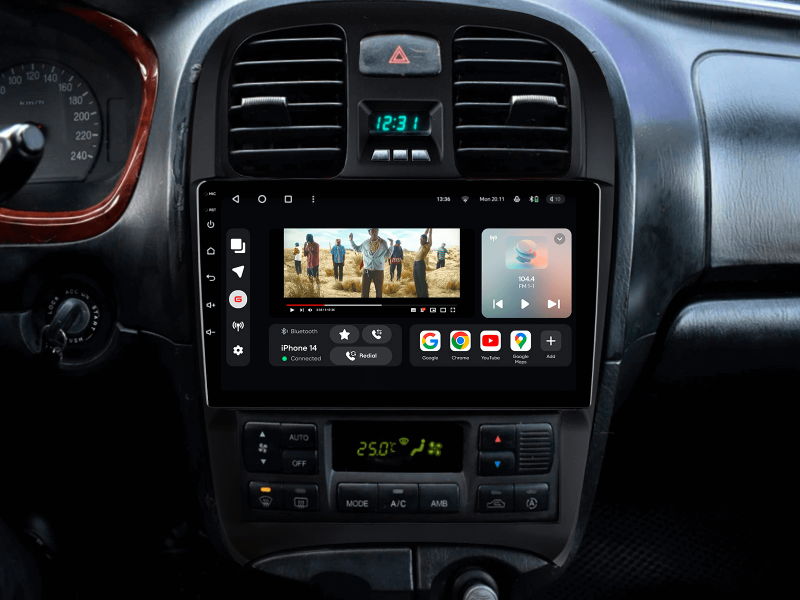 Отримайте Apple CarPlay, Android Auto, Google Maps та Wase навігацію з інформацією про затори на великому вбудованому екрані прямо у вашому автомобілі Hyundai Sonata 2001-2012. Насолоджуйтесь YouTube, Netflix, Amazon, Disney, а також інтернет-радіо та потоковою музикою у вашому авто.