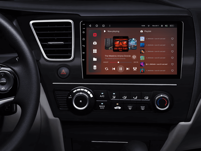 Отримайте Apple CarPlay, Android Auto, Google Maps та Wase навігацію з інформацією про затори на великому вбудованому екрані прямо у вашому автомобілі Honda Civic 2013-2016. Насолоджуйтесь YouTube, Netflix, Amazon, Disney, а також інтернет-радіо та потоковою музикою у вашому авто.