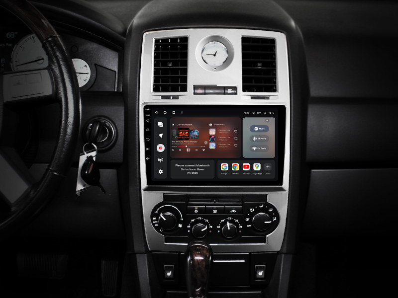 Отримайте Apple CarPlay, Android Auto, Google Maps та Wase навігацію з інформацією про затори на великому вбудованому екрані прямо у вашому автомобілі Chrysler 300C 2004-2011. Насолоджуйтесь YouTube, Netflix, Amazon, Disney, а також інтернет-радіо та потоковою музикою у вашому авто.