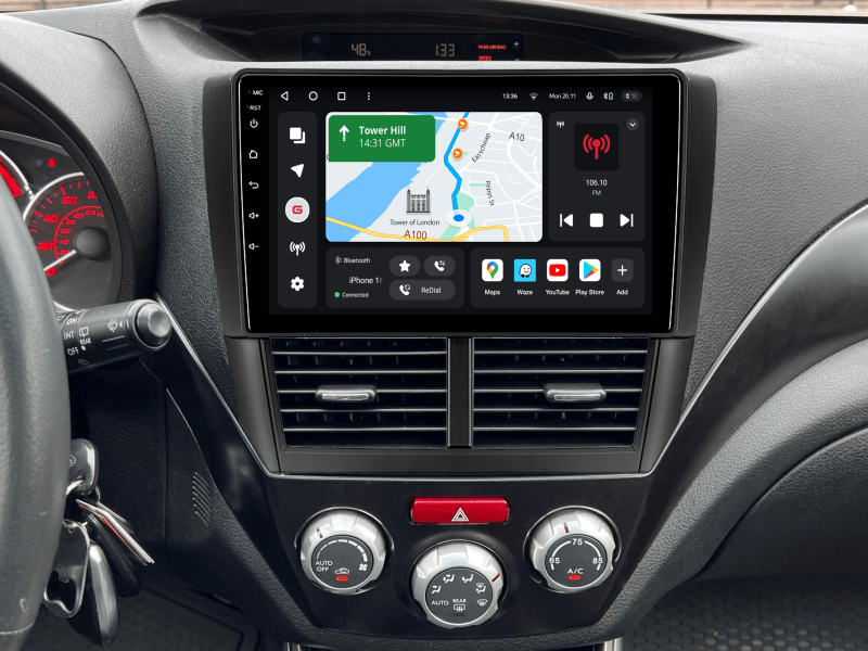 Отримайте Apple CarPlay, Android Auto, Google Maps та Wase навігацію з інформацією про затори на великому вбудованому екрані прямо у вашому автомобілі Subaru Forester | Impreza 2007-2011. Насолоджуйтесь YouTube, Netflix, Amazon, Disney, а також інтернет-радіо та потоковою музикою у вашому авто.