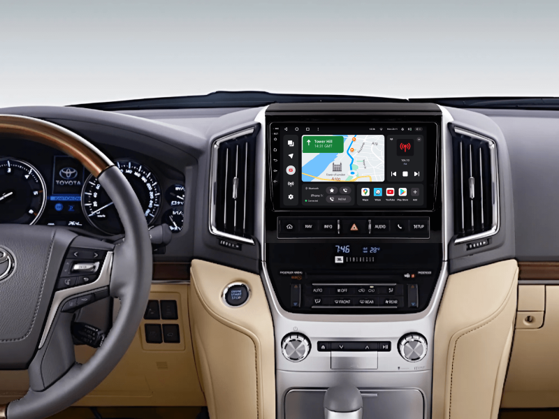 Ваша улюблена навігація Google Maps або Wase нарешті на екрані вашого автомобіля Toyota LandCruiser 200. Завжди онлайн, а отже з інформацією про затори, камери і з можливістю шукати потрібні місця. Забудьте про використання смартфона для навігації. Тепер побудувати маршрут і рухатись по ньому зручно безпосередньо на екрані вашого автомобіля. Голосові підказки навігації приглушують музику або радіо. Екран не перемикається при телефонній розмові гучним зв’язком. Ви більше ніколи не заблукаєте і не пропустите поворот.