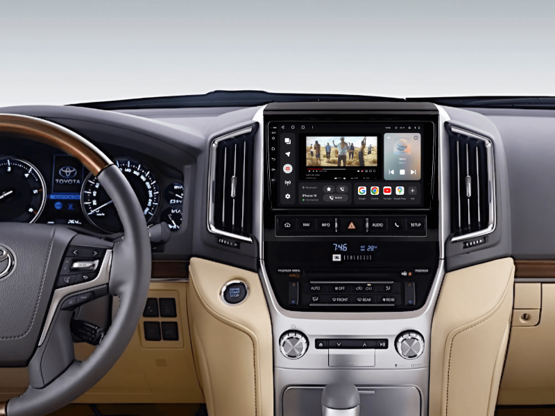 Отримайте Apple CarPlay, Android Auto, Google Maps та Wase навігацію з інформацією про затори на великому вбудованому екрані прямо у вашому автомобілі Toyota Land Cruiser 2015-2020. Насолоджуйтесь YouTube, Netflix, Amazon, Disney, а також інтернет-радіо та потоковою музикою у вашому авто.