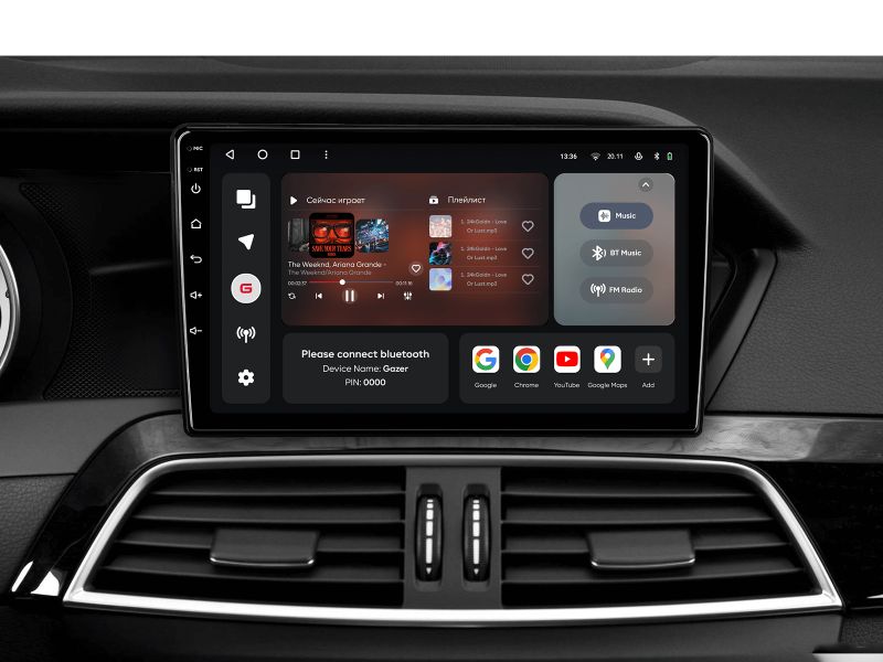 Ви назавжди забудете про 6 звичних кнопок FM радіо, серед яких зазвичай обираєте музику в машині. Тепер ви зможете слухати будь-яку інтернет-радіостанцію будь-якої країни в цифровій якості без перешкод. Якщо ви фанат звичного FM, то насолоджуйтесь зручною навігацією по радіостанціях з обкладинками та RDS інформацією. Максимальна дальність приймання FM без перешкод — це візитівка Gazer multimedia system вже понад 10 років. Порівняйте з вашою штатною магнітолою Mercedes-Benz C-Class 2011-2015 — тепер улюблені станції грають на більшій відстані від міста без шипіння.