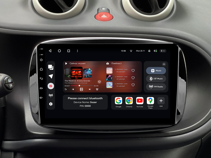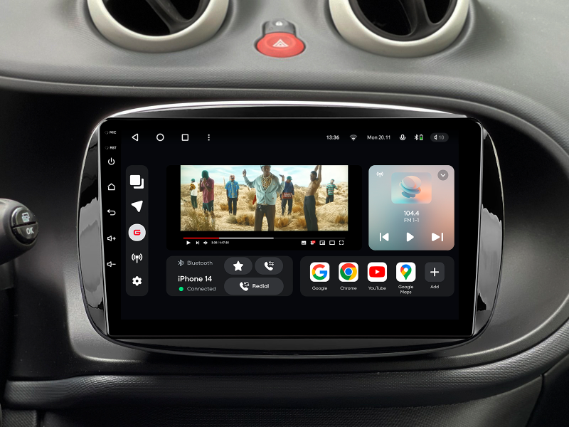 Мультимедійна система Мультимедійна система Gazer T6009-W453 до Smart Fortwo 3 (C453, A453, W453) 2014-2020 підтримує дві SIM карти для 4G LTE доступу до Інтернету. Як тільки ви завели авто — магнітола одразу підʼєднується і ви можете побудувати маршрут в Google Maps чи Wase. Одразу в ефірі інтернет-радіо або ваш улюблений музичний застосунок. Хочете дивитись відео — обирайте серед YouTube, Netflix, Amazon Prime, Disney або будь-який інший онлайн кінотеатр. Вам доступні більш ніж 10000 застосунків на Google PlayMarket: навігація, музика, фільми та серіали. З інтернетом — це справжній розважальний центр в Smart Fortwo 2014-2020, а не просто екран.