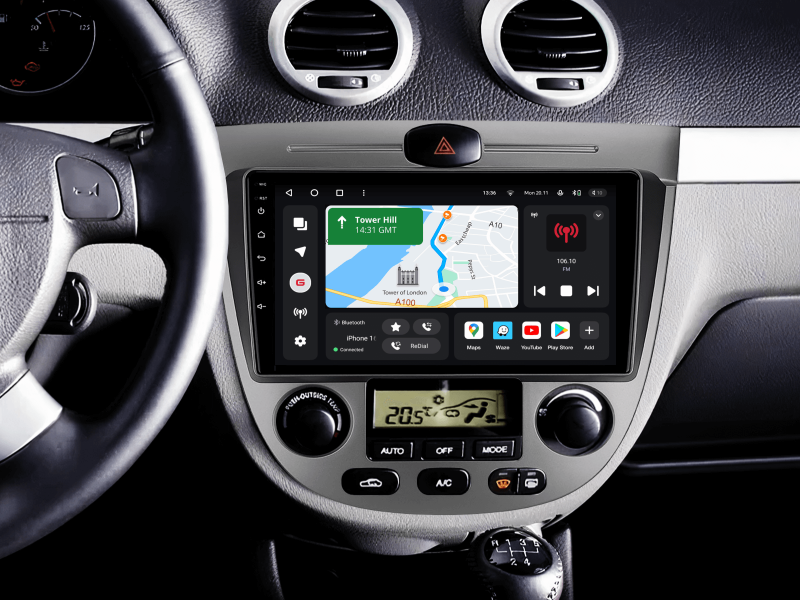 Отримайте Apple CarPlay, Android Auto, Google Maps та Wase навігацію з інформацією про затори на великому вбудованому екрані прямо у вашому автомобілі Buick Excelle Hrv 2004-2013. Насолоджуйтесь YouTube, Netflix, Amazon, Disney, а також інтернет-радіо та потоковою музикою у вашому авто.