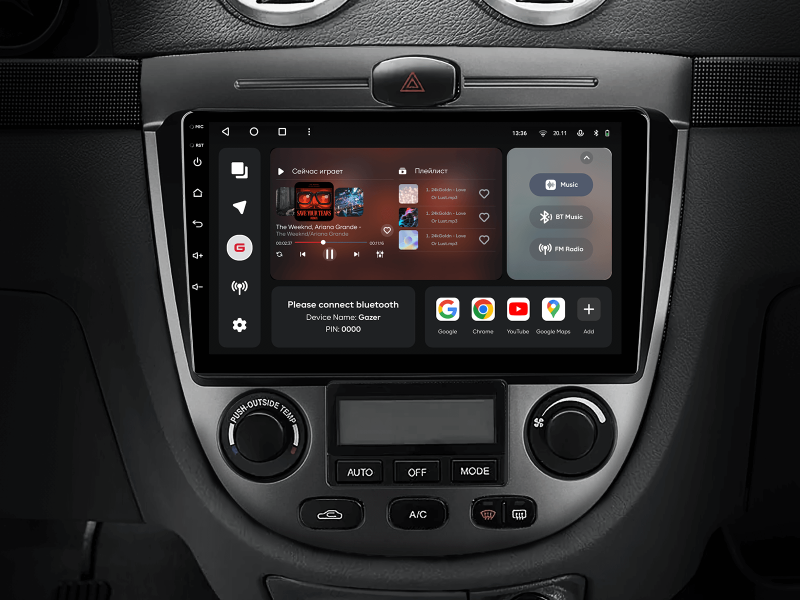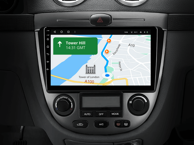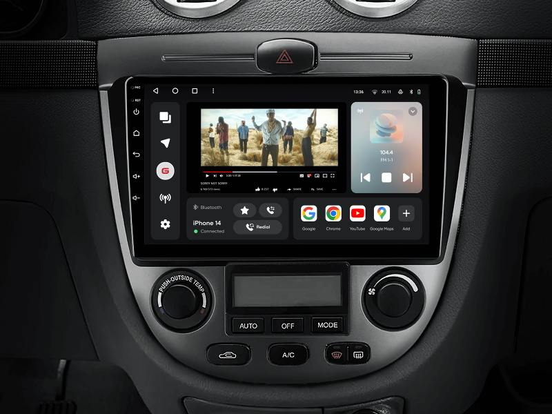 Отримайте Apple CarPlay, Android Auto, Google Maps та Wase навігацію з інформацією про затори на великому вбудованому екрані прямо у вашому автомобілі Buick~|~Chevrolet Lacetti 2004-2013. Насолоджуйтесь YouTube, Netflix, Amazon, Disney, а також інтернет-радіо та потоковою музикою у вашому авто.