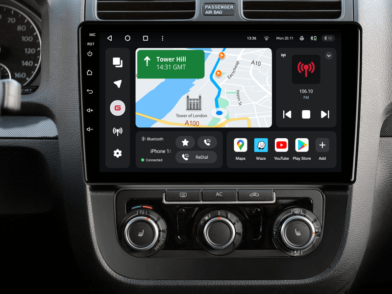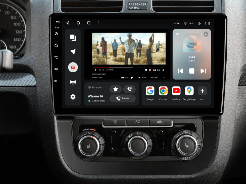 Отримайте Apple CarPlay, Android Auto, Google Maps та Wase навігацію з інформацією про затори на великому вбудованому екрані прямо у вашому автомобілі Volkswagen Jetta 2005-2010. Насолоджуйтесь YouTube, Netflix, Amazon, Disney, а також інтернет-радіо та потоковою музикою у вашому авто.