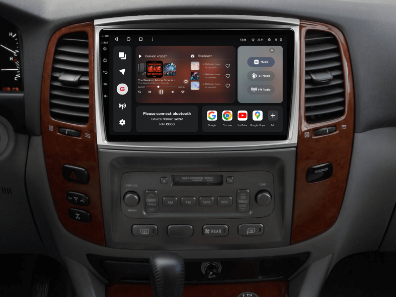Мультимедійна система Мультимедійна система Gazer T6510-J100/H до Toyota Land Cruiser 100 (J100) 2002-2007 підтримує дві SIM карти для 4G LTE доступу до Інтернету. Як тільки ви завели авто — магнітола одразу підʼєднується і ви можете побудувати маршрут в Google Maps чи Wase. Одразу в ефірі інтернет-радіо або ваш улюблений музичний застосунок. Хочете дивитись відео — обирайте серед YouTube, Netflix, Amazon Prime, Disney або будь-який інший онлайн кінотеатр. Вам доступні більш ніж 10000 застосунків на Google PlayMarket: навігація, музика, фільми та серіали. З інтернетом — це справжній розважальний центр в Toyota Land Cruiser 2002-2007, а не просто екран.