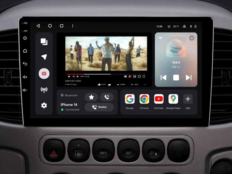 Навігація, плеєр чи застосунки? Не потрібно перемикатись — все одночасно відображається на вашому екрані. Тож ви можете перемикати музику, не втрачаючи контроль над маршрутом. Налаштуйте під себе всі чотири блоки головного екрану так, як вам зручно.