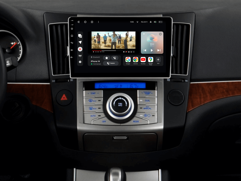 Отримайте Apple CarPlay, Android Auto, Google Maps та Wase навігацію з інформацією про затори на великому вбудованому екрані прямо у вашому автомобілі Hyundai IX55 | Veracruz 2006-2015. Насолоджуйтесь YouTube, Netflix, Amazon, Disney, а також інтернет-радіо та потоковою музикою у вашому авто.