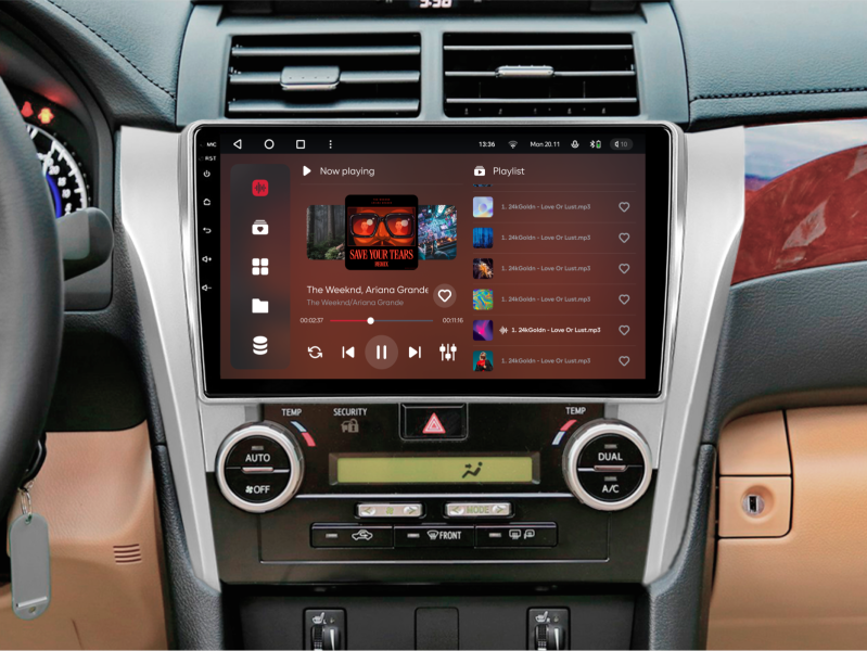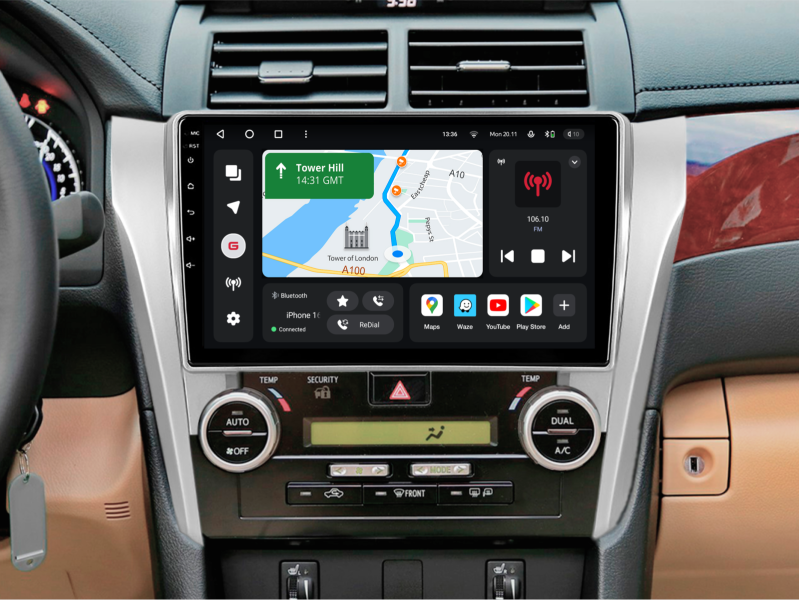 Отримайте Apple CarPlay, Android Auto, Google Maps та Wase навігацію з інформацією про затори на великому вбудованому екрані прямо у вашому автомобілі Toyota Camry 2011-2014. Насолоджуйтесь YouTube, Netflix, Amazon, Disney, а також інтернет-радіо та потоковою музикою у вашому авто.