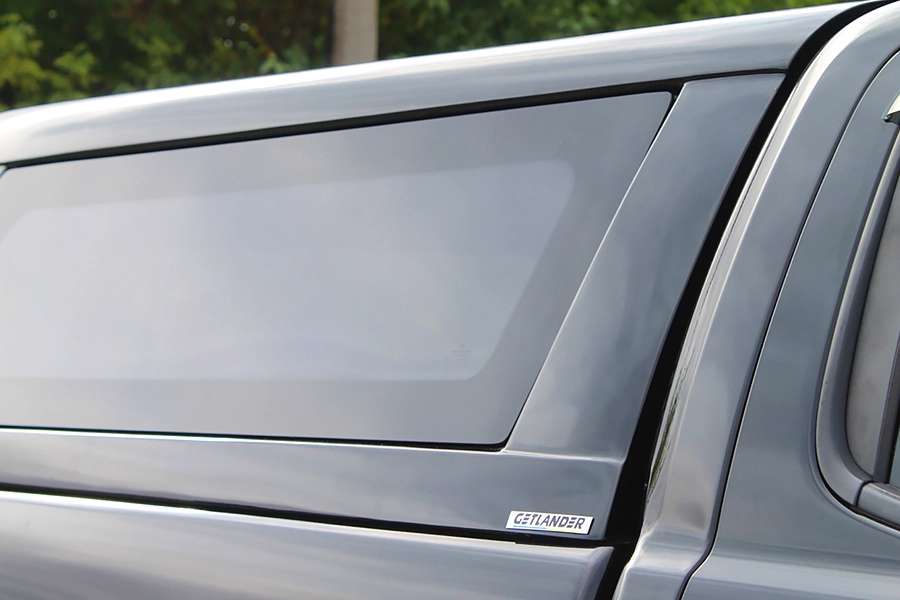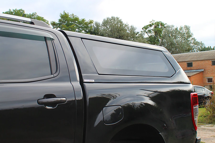 Внутрішнє оздоблення карпетом надає кузову охайного вигляду та додатково захищає вантаж від пошкоджень. Тоноване загартоване скло забезпечує приватність, а щільне прилягання кунга до кузова пікапа ефективно захищає від пилу, води та агресивних погодних умов. Додатковим бонусом є спойлер зі вбудованим стоп-сигналом і внутрішнє LED-підсвічування — для зручності використання в темний час доби.