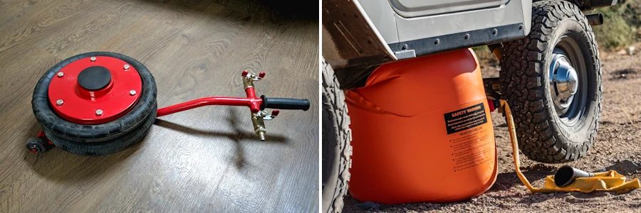 - Плюси: дуже швидкий підйом, мінімальні зусилля, у випадку окремої подушки може працювати на м'яких і нерівних поверхнях (пісок, бруд, сніг), висока вантажопідйомність (від 2 до 40 тонн). У підкатному варіанті є чудовим вибором для шиномонтажу та СТО, де потрібен миттєвий підйом. А окрема подушка незамінна на оффроуді.