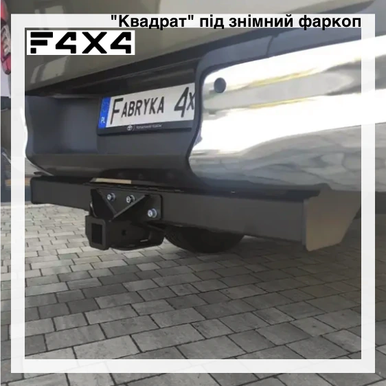 Купити фаркоп для Хайлюкс можна від виробників Fabrika 4x4 та Полігон-Авто. Перший виробник пропонує кріплення (балку) під розʼєм типу "квадрат", куди можна без проблем встановити як звичайний швидкознімний фаркоп, так і безліч інших аксесуарів.