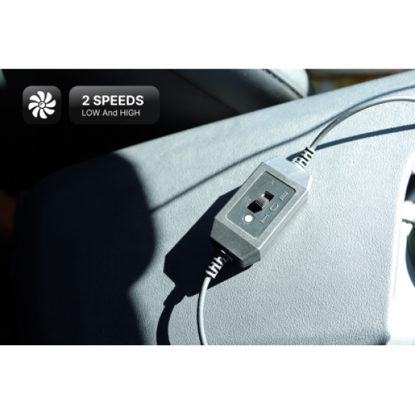 Вентилятор підключається до мережі автомобіля через штекер прикурювача 12V.