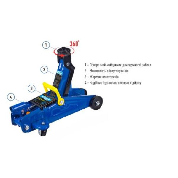 Оптимальне поєднання надійності, безпеки та зручності - основні переваги нашого підкатного домкрата. Особливістю підкатного домкрата є дві пари колесиків, при цьому передня пара поворотна на 360 градусів, що забезпечує найбільш зручне розташування під автомобілем. Зручна ручка та плавний механізм роботи дозволять вам підняти автомобіль з мінімальним фізичним зусиллям. Наш підкатний домкрат забезпечує надійну підтримку та комфорт при кожному використанні.