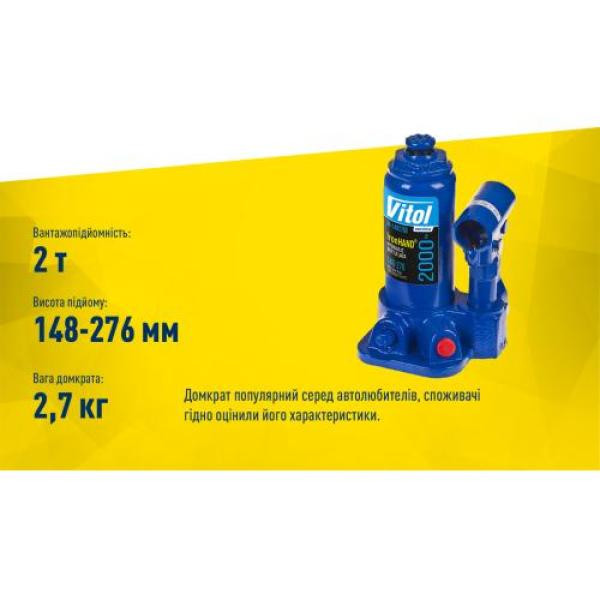 Vitol Iron HAND - це обмежена лінійка домкратів, виділена в окремий бренд та об'єднана однією загальною рисою - вигідна ціна при збереженні високої якості. Придбавши телескопічний гідравлічний домкрат IH-148276D-K, ви будете готові до будь-яких викликів, які може кинути вам автомобільне життя.