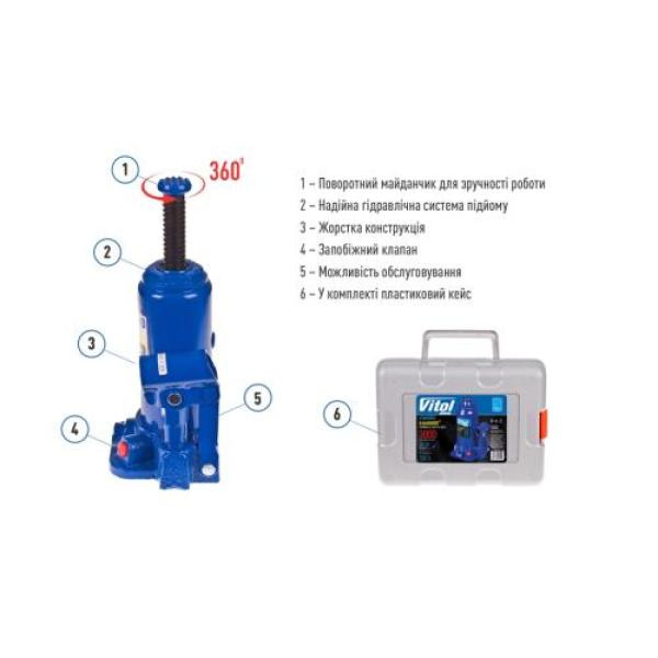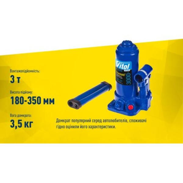 Vitol Iron HAND - це обмежена лінійка домкратів, виділена в окремий бренд та об'єднана однією загальною рисою - вигідна ціна при збереженні високої якості. Придбавши телескопічний гідравлічний домкрат ДБ-180350D-K, ви будете готові до будь-яких викликів, які може кинути вам автомобільне життя.
