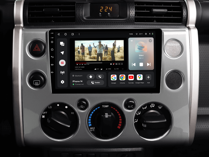 Отримайте Apple CarPlay, Android Auto, Google Maps та Wase навігацію з інформацією про затори на великому вбудованому екрані прямо у вашому автомобілі Toyota FJ Cruiser 2006-2020. Насолоджуйтесь YouTube, Netflix, Amazon, Disney, а також інтернет-радіо та потоковою музикою у вашому авто.
