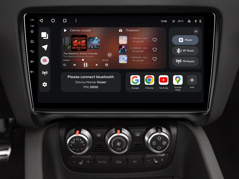 Ви назавжди забудете про 6 звичних кнопок FM радіо, серед яких зазвичай обираєте музику в машині. Тепер ви зможете слухати будь-яку інтернет-радіостанцію будь-якої країни в цифровій якості без перешкод. Якщо ви фанат звичного FM, то насолоджуйтесь зручною навігацією по радіостанціях з обкладинками та RDS інформацією. Максимальна дальність приймання FM без перешкод — це візитівка Gazer multimedia system вже понад 10 років. Порівняйте з вашою штатною магнітолою Audi TT 2006-2014 — тепер улюблені станції грають на більшій відстані від міста без шипіння.