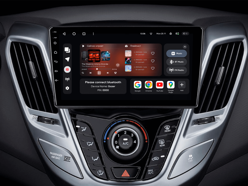 Не беріть в руки телефон, коли ви за кермом. Прочитайте SMS прямо на екрані мультимедійної системи Мультимедійна система Gazer T6009-FS/L до Hyundai Veloster (FS) 2011-2017, звісно тільки з вашого дозволу в налаштуваннях Bluetooth. Керуйте музикою зі штатних кнопок на кермі Hyundai Veloster 2011-2017. Будуйте маршрут голосом, не відволікаючись від дороги ні на мить.