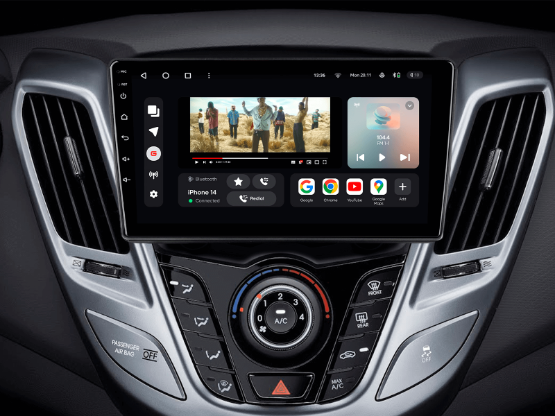 Отримайте Apple CarPlay, Android Auto, Google Maps та Wase навігацію з інформацією про затори на великому вбудованому екрані прямо у вашому автомобілі Hyundai Veloster 2011-2017. Насолоджуйтесь YouTube, Netflix, Amazon, Disney, а також інтернет-радіо та потоковою музикою у вашому авто.