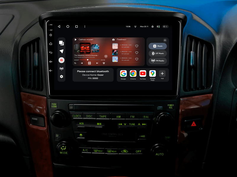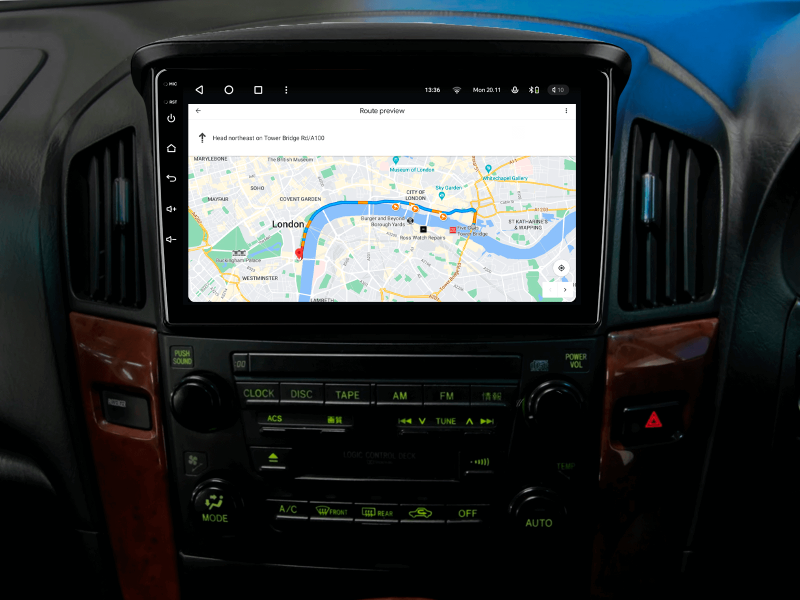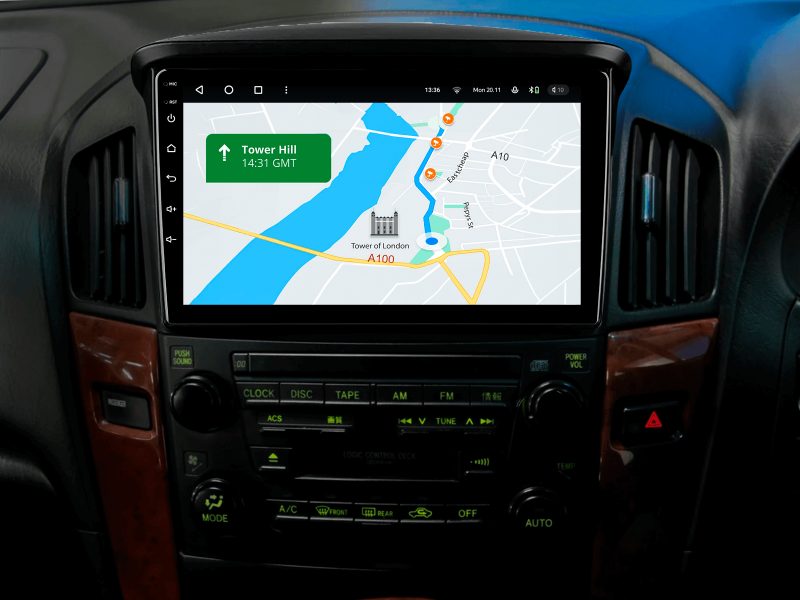 Отримайте Apple CarPlay, Android Auto, Google Maps та Wase навігацію з інформацією про затори на великому вбудованому екрані прямо у вашому автомобілі Lexus RX300 1997-2003. Насолоджуйтесь YouTube, Netflix, Amazon, Disney, а також інтернет-радіо та потоковою музикою у вашому авто.