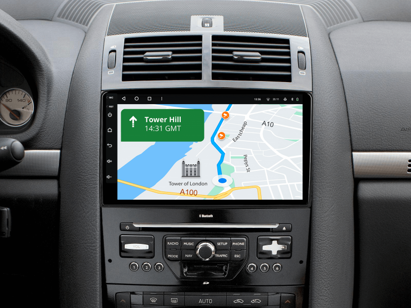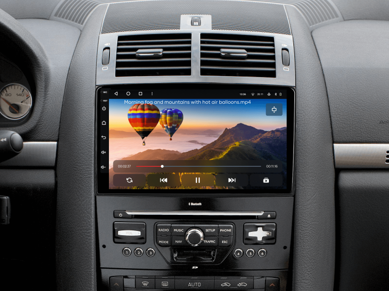 Отримайте Apple CarPlay, Android Auto, Google Maps та Wase навігацію з інформацією про затори на великому вбудованому екрані прямо у вашому автомобілі Peugeot 407 2004-2011. Насолоджуйтесь YouTube, Netflix, Amazon, Disney, а також інтернет-радіо та потоковою музикою у вашому авто.