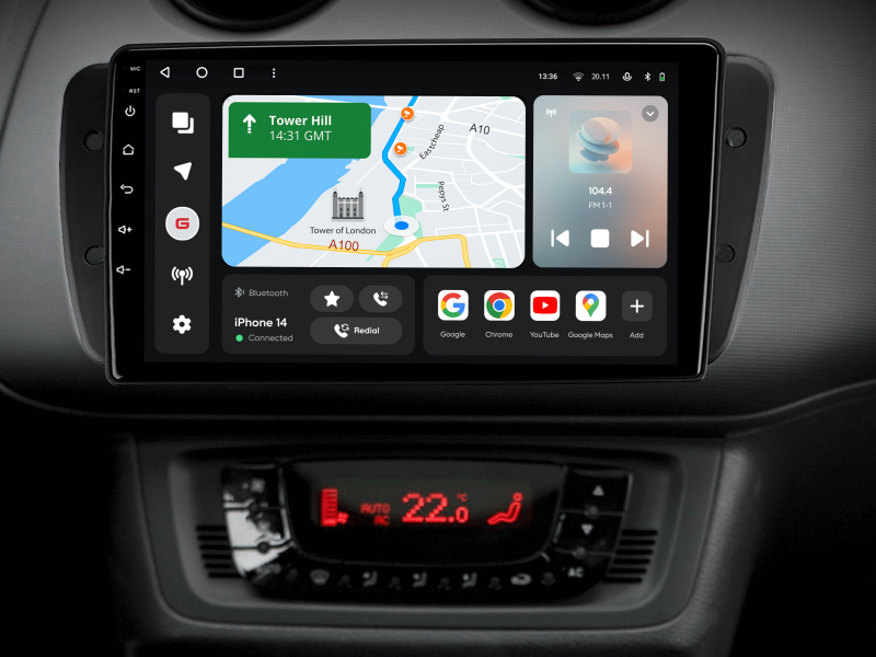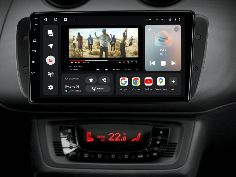 Отримайте Apple CarPlay, Android Auto, Google Maps та Wase навігацію з інформацією про затори на великому вбудованому екрані прямо у вашому автомобілі Seat Ibiza 2008-2015. Насолоджуйтесь YouTube, Netflix, Amazon, Disney, а також інтернет-радіо та потоковою музикою у вашому авто.