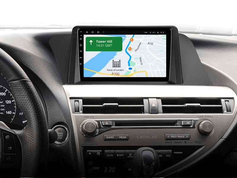 Отримайте Apple CarPlay, Android Auto, Google Maps та Wase навігацію з інформацією про затори на великому вбудованому екрані прямо у вашому автомобілі Lexus RX270 | RX350 | RX350 | RX450h 2008-2015. Насолоджуйтесь YouTube, Netflix, Amazon, Disney, а також інтернет-радіо та потоковою музикою у вашому авто.
