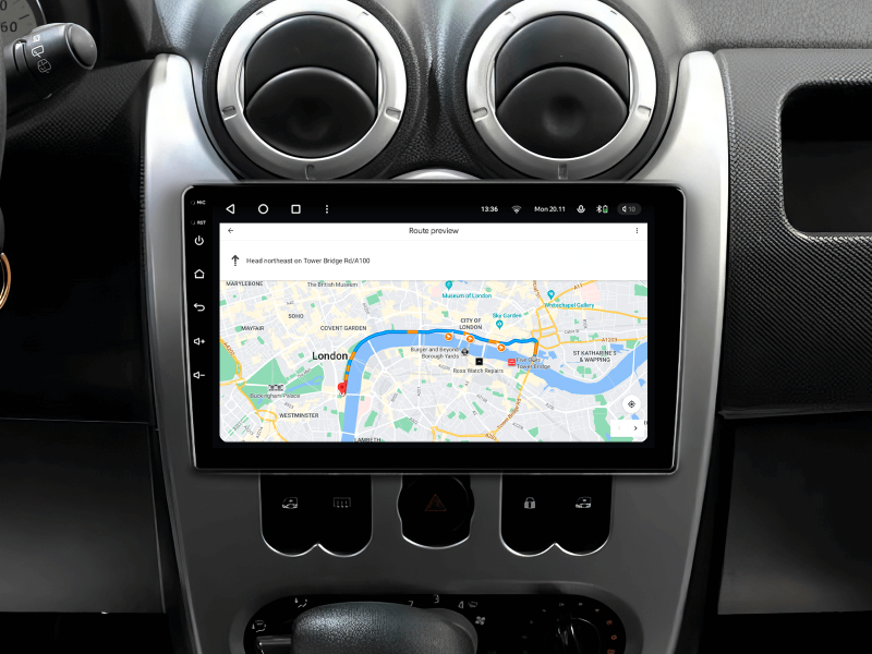 Отримайте Apple CarPlay, Android Auto, Google Maps та Wase навігацію з інформацією про затори на великому вбудованому екрані прямо у вашому автомобілі Renault Duster | Logan | Sandero 2009-2020. Насолоджуйтесь YouTube, Netflix, Amazon, Disney, а також інтернет-радіо та потоковою музикою у вашому авто.