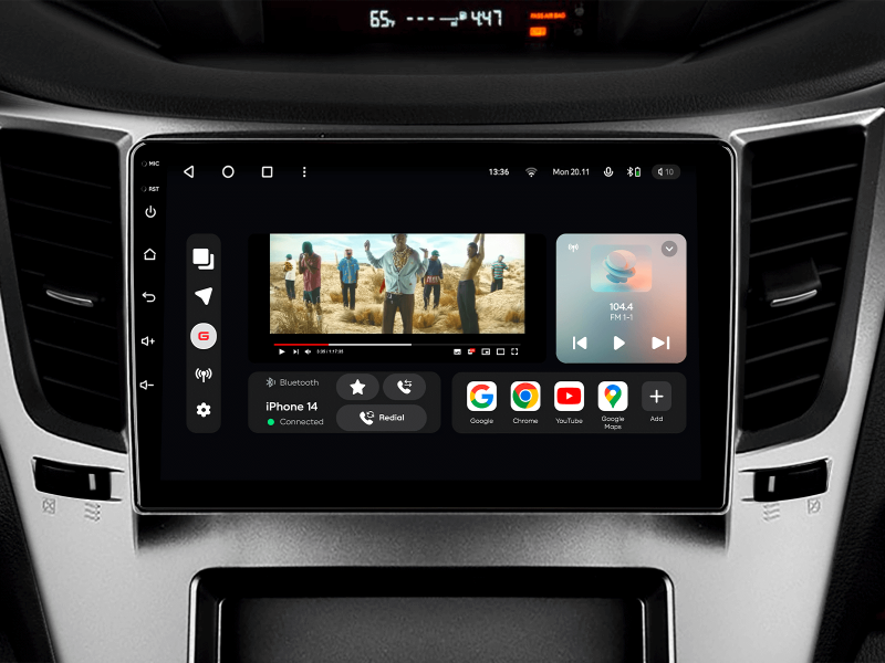 Отримайте Apple CarPlay, Android Auto, Google Maps та Wase навігацію з інформацією про затори на великому вбудованому екрані прямо у вашому автомобілі Subaru Legacy | Outback 2009-2014. Насолоджуйтесь YouTube, Netflix, Amazon, Disney, а також інтернет-радіо та потоковою музикою у вашому авто.