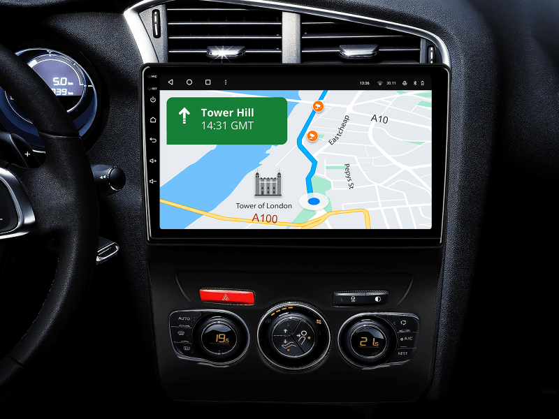 Отримайте Apple CarPlay, Android Auto, Google Maps та Wase навігацію з інформацією про затори на великому вбудованому екрані прямо у вашому автомобілі Citroen C4 2013-2016. Насолоджуйтесь YouTube, Netflix, Amazon, Disney, а також інтернет-радіо та потоковою музикою у вашому авто.