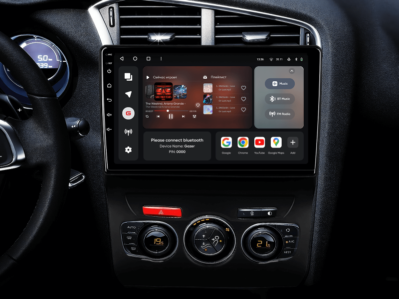 Ви назавжди забудете про 6 звичних кнопок FM радіо, серед яких зазвичай обираєте музику в машині. Тепер ви зможете слухати будь-яку інтернет-радіостанцію будь-якої країни в цифровій якості без перешкод. Якщо ви фанат звичного FM, то насолоджуйтесь зручною навігацією по радіостанціях з обкладинками та RDS інформацією. Максимальна дальність приймання FM без перешкод — це візитівка Gazer multimedia system вже понад 10 років. Порівняйте з вашою штатною магнітолою Citroen C4 2013-2016 — тепер улюблені станції грають на більшій відстані від міста без шипіння.