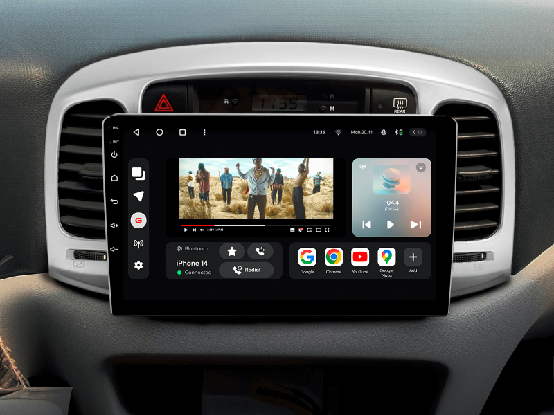 Отримайте Apple CarPlay, Android Auto, Google Maps та Wase навігацію з інформацією про затори на великому вбудованому екрані прямо у вашому автомобілі Hyundai Accent 2006-2011. Насолоджуйтесь YouTube, Netflix, Amazon, Disney, а також інтернет-радіо та потоковою музикою у вашому авто.
