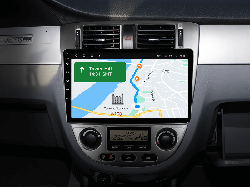 Отримайте Apple CarPlay, Android Auto, Google Maps та Wase навігацію з інформацією про затори на великому вбудованому екрані прямо у вашому автомобілі Buick~|~Daewoo Gentra 2013-2015. Насолоджуйтесь YouTube, Netflix, Amazon, Disney, а також інтернет-радіо та потоковою музикою у вашому авто.