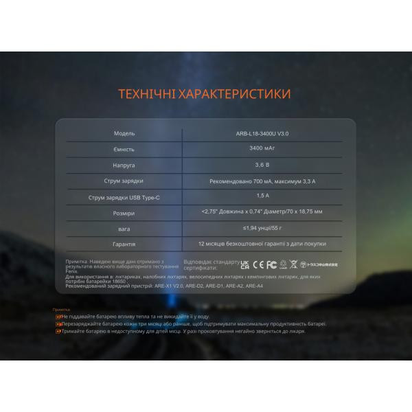 | Длина клинка | Елементи живлення та ЗУ |