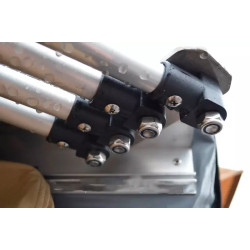 Компания предлагает 2 вида автопалаток: тент на металлическом каркасе или пластиковое основание в сочетании с тентом. Крепится такая деталь на крышу вашего внедорожника к поперечным рейлингам, поэтому перед покупкой стоит позаботиться об их установке.