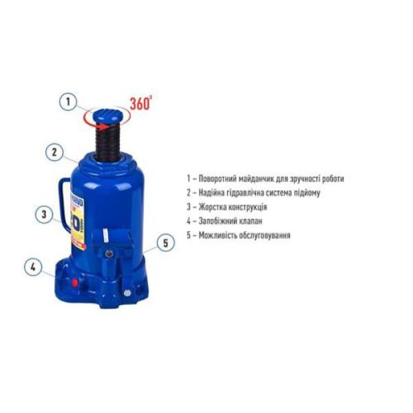 Важливо пам'ятати про безпеку при використанні телескопічного домкрату. Захисний клапан запобігає перевищенню максимального допустимого тиску та грузопідйомності, забезпечуючи безпеку при підйомі важких вантажів.