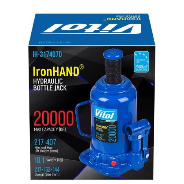Vitol Iron HAND - це обмежена лінійка домкратів, виділена в окремий бренд та об'єднана однією загальною рисою - вигідна ціна при збереженні високої якості. Придбавши телескопічний гідравлічний домкрат IH-317407D, ви будете готові до будь-яких викликів, які може кинути вам автомобільне життя.