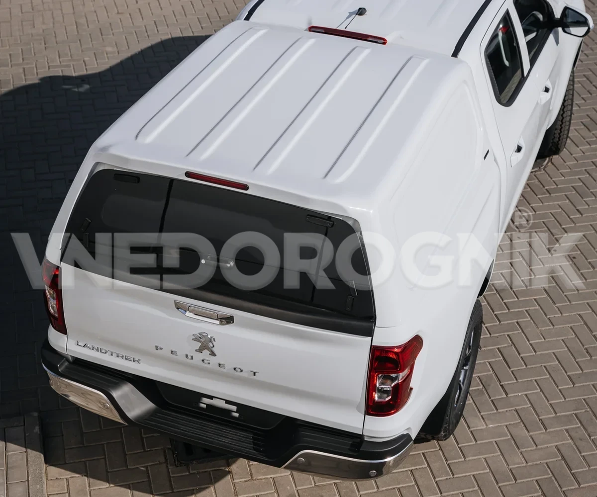 Кунг на Peugeot Landtrek можно легко покрасить в цвет автомобиля, что позволяет гармонично вписать его в дизайн пикапа. Боковые панели без окон обеспечивают дополнительную прочность и позволяют максимально загружать кузов.