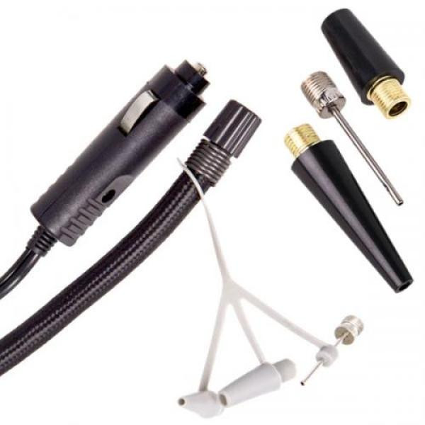Компресор VOIN VL-430 має дріт живлення довжиною 3 метри, повітряний шланг 1 метр, набір насадок, перехідник для акумулятора та сумку для зручного зберігання та транспортування.